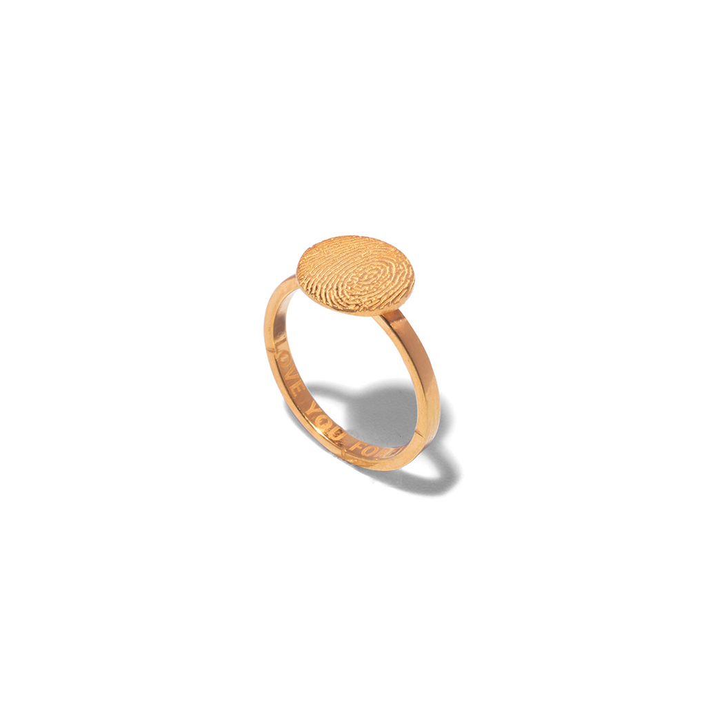 Embrace individuality with our 14kt Gold Round Fingerprint Ring. This distinctive piece features a personalized fingerprint engraving, capturing a moment of personal significance. Crafted in radiant 14kt gold, it's a symbol of uniqueness and cherished memories, perfect for celebrating special bonds.