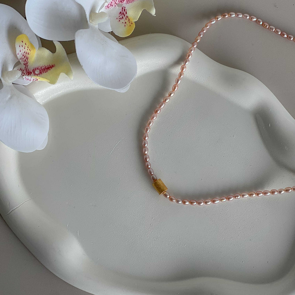Enhance your elegance with our Pink Pearl Beaded Necklace. Featuring lustrous pink pearls accented with a delicate gold detail, this piece adds a touch of timeless beauty to any outfit, perfect for both everyday wear and special occasions.