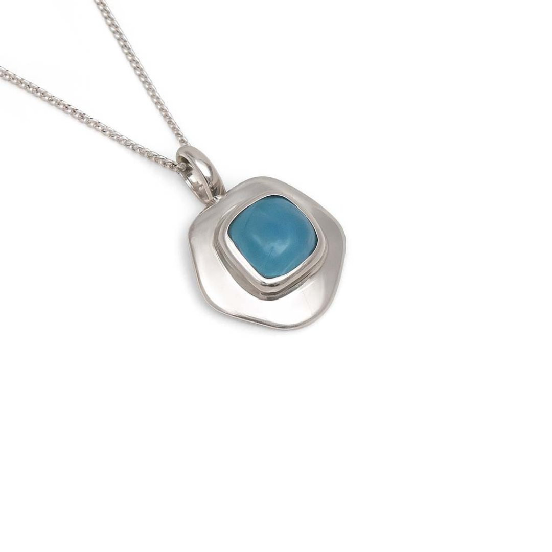 This chalcedony necklace brings a calm, soothing touch to any look. The stone’s natural translucence catches the light beautifully, showing off soft blue-green tones that feel fresh and easy to wear.