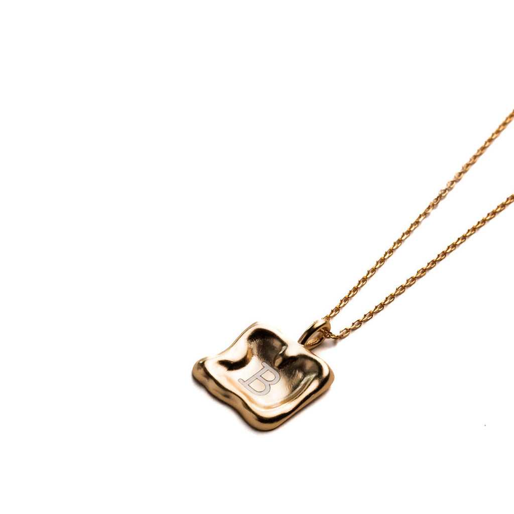 Make a statement with our Molten Engraved Necklace, where the unconventional beauty of the pendant meets the personal touch of customized initials. This necklace is a perfect blend of contemporary design and sentimental elegance.